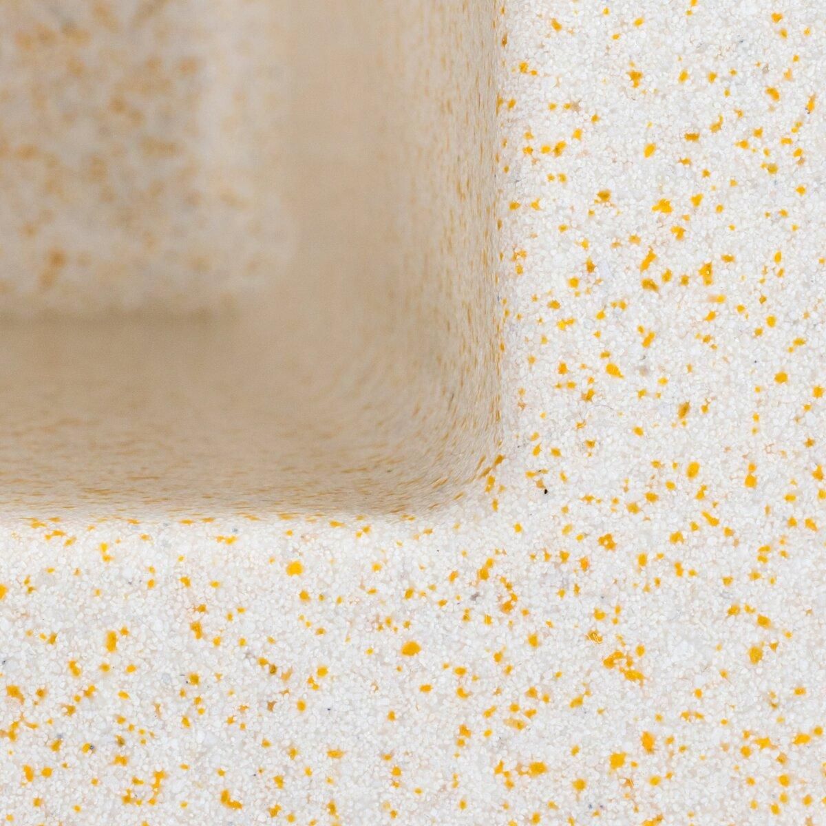Эта мойка изготовлена с помощью технологии Solid Surface, гарантирующей ее качество и долговечность. Этот материал производится методом литья, и в нем сочетаются 80% кварцевого песка и 20% смолы. Зрительно он напоминает природный камень, а его поверхность является теплой и шелковистой на ощупь.