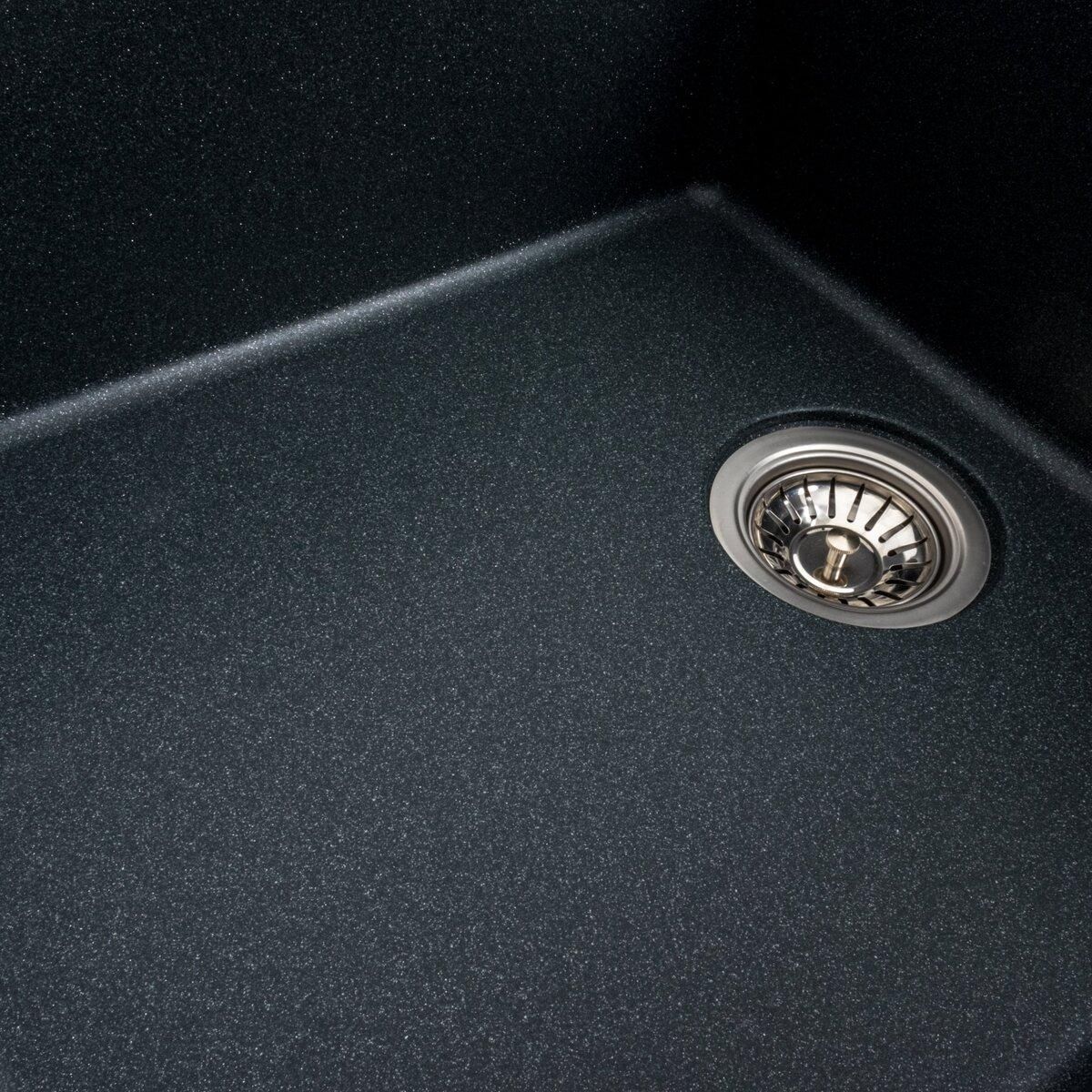 Мойка имеет матовую фактуру и приятный для глаза цвет – антрацит, позволяющий ей легко вписаться в интерьер кухни.