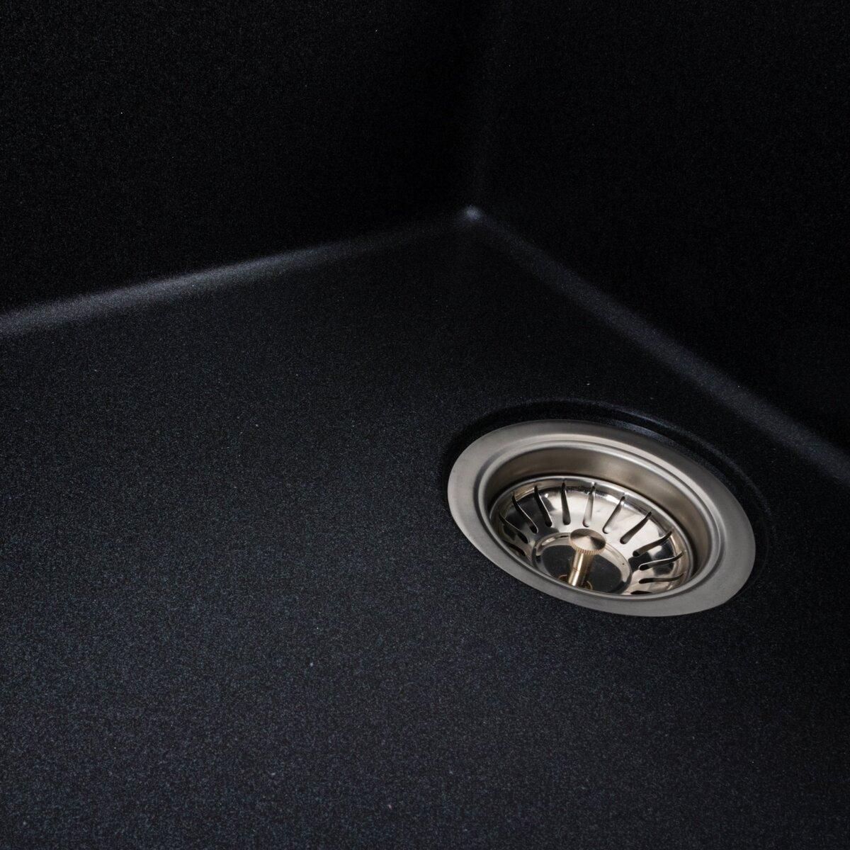 Мойка имеет матовую фактуру и приятный для глаза цвет – карбон, что позволяет ей легко вписаться в интерьер кухни.