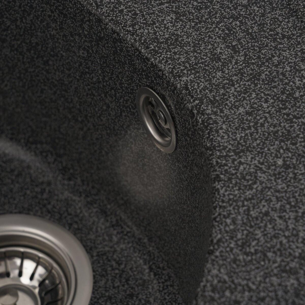 Мойка имеет матовую фактуру и приятный для глаза цвет - графит, что позволяет ей легко вписаться в интерьер кухни.