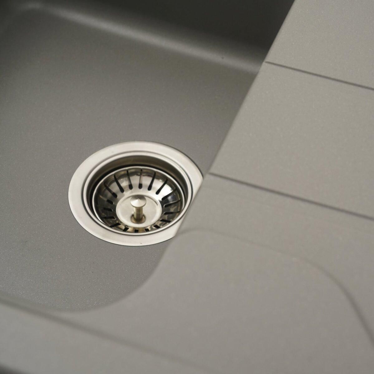 Мойка имеет матовую фактуру и приятный для глаза цвет - серый металлик, что позволяет ей легко вписаться в интерьер кухни.