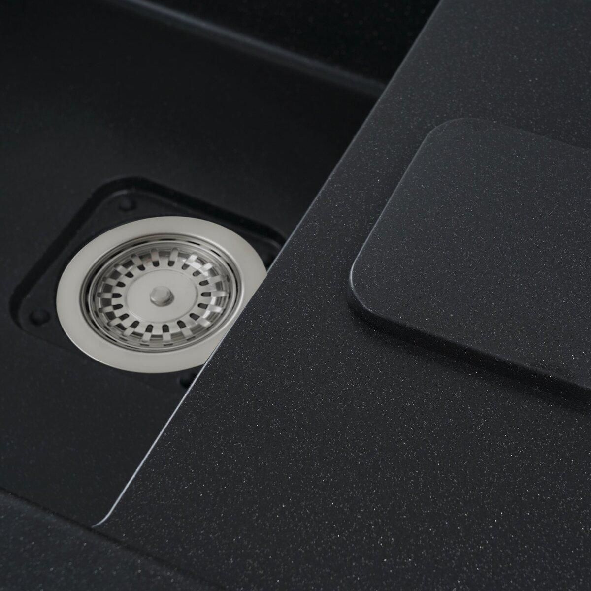 Мойка имеет матовую фактуру и приятный для глаза цвет - черный металлик, что позволяет ей легко вписаться в интерьер кухни.