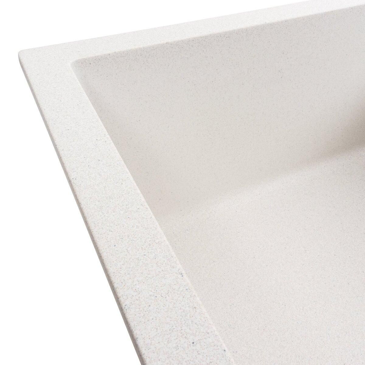 Гранитная мойка для кухни 7050 CASCADA цвета Белый в точку украинского бренда VALESO – это стильная, врезная, прямоугольная мойка, которая своим видом прекрасно дополнит дизайн вашей кухни. Мойка на 80% состоит из кварца и на 20% из очень жесткой акриловой смолы, благодаря чему неприхотлива в уходе, а также имеет большой запас прочности.