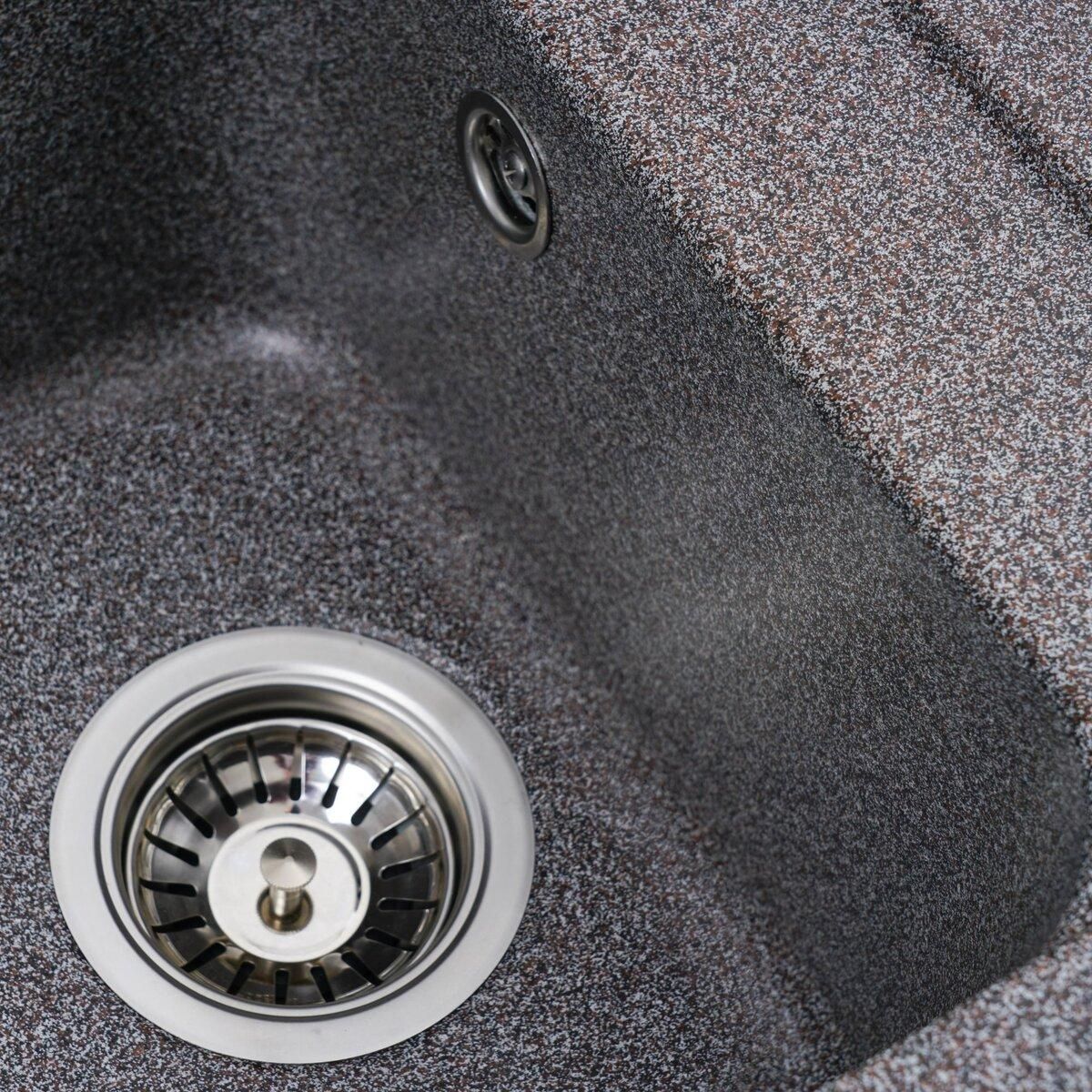 Мойка имеет матовую фактуру и приятный для глаза цвет - микс, что позволяет ей легко вписаться в интерьер кухни.
