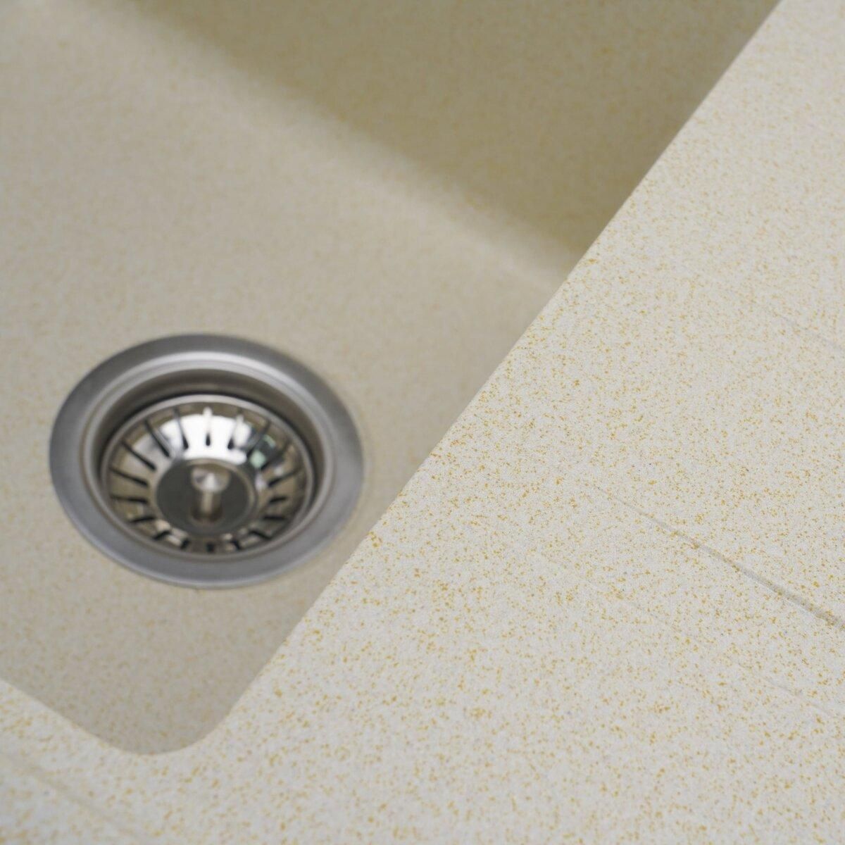 Мойка имеет матовую фактуру и приятный для глаза цвет - песок, что позволяет ей легко вписаться в интерьер кухни.