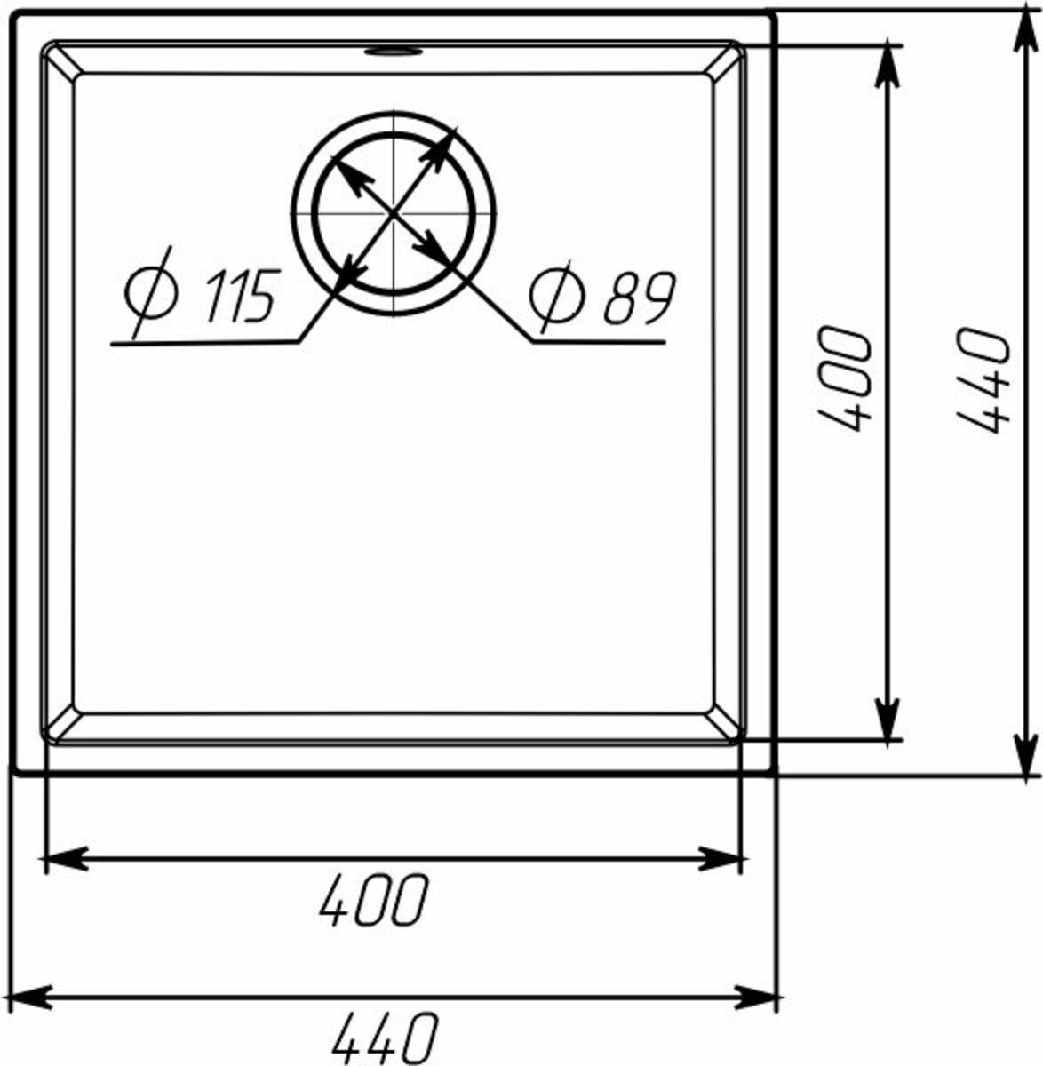 Благодаря своим компактным размерам – длина 440 мм и ширина 440 мм, глубина 200мм – эта мойка идеально подходит для небольших кухонь, где каждый дюйм простора ценен. Квадратная форма придает современности и гармонию в дизайне. Размер чаши 400х400х200мм.