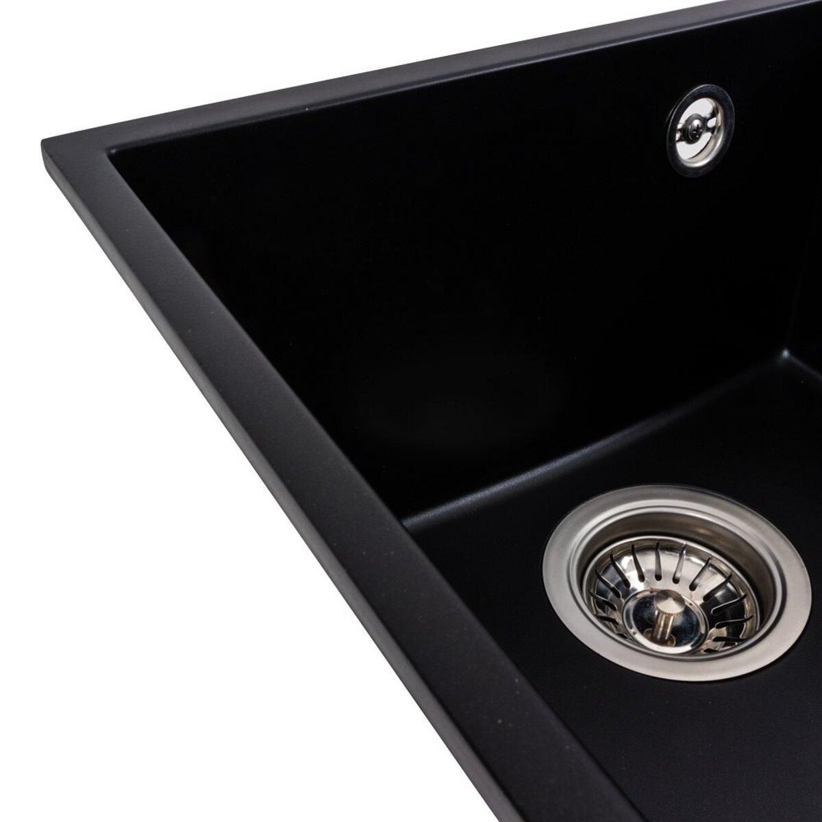 Мойка имеет матовую фактуру и приятный для глаза цвет – черный, что позволяет ей легко вписаться в интерьер кухни.