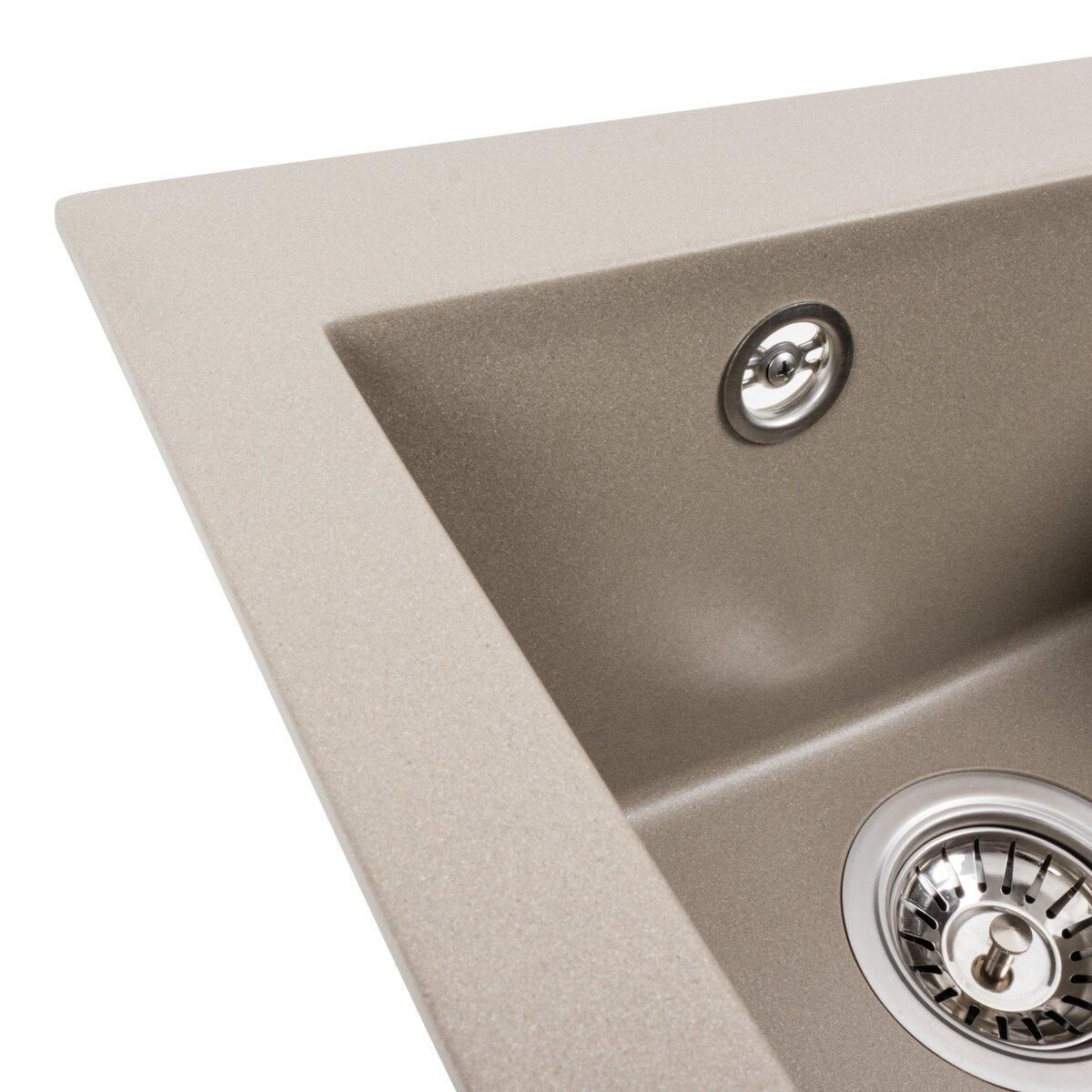 Гранитная мойка для кухни 4150 SOKIL украинского бренда VALESO – это стильная, врезная, прямоугольная мойка, которая своим видом прекрасно дополнит дизайн вашей кухни. Мойка на 80% состоит из кварца и на 20% из очень жесткой акриловой смолы, благодаря чему неприхотлива в уходе, а также имеет большой запас прочности.