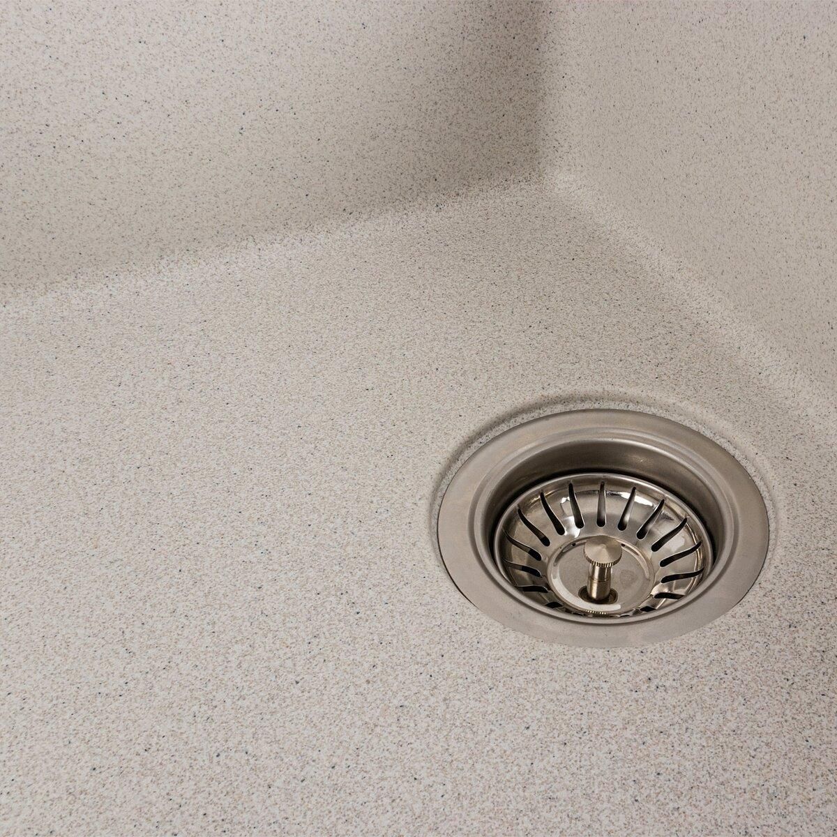Эта мойка изготовлена с помощью технологии Solid Surface, гарантирующей ее качество и долговечность. Этот материал производится методом литья, и в нем сочетаются 80% кварцевого песка и 20% смолы. Зрительно он напоминает природный камень, а его поверхность является теплой и шелковистой на ощупь.