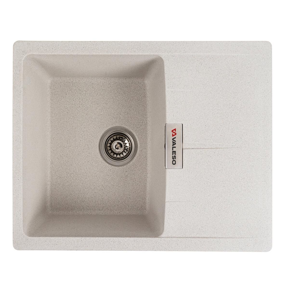Гранитная кухонная мойка VALESO ZIRKONE 6250, матовая белая с точечным рисунком