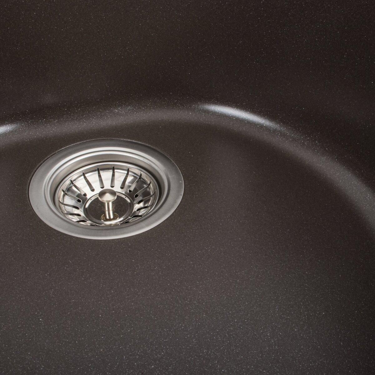 Мойка имеет матовую фактуру и приятный для глаза цвет - темная скала, что позволяет ей легко вписаться в интерьер кухни.