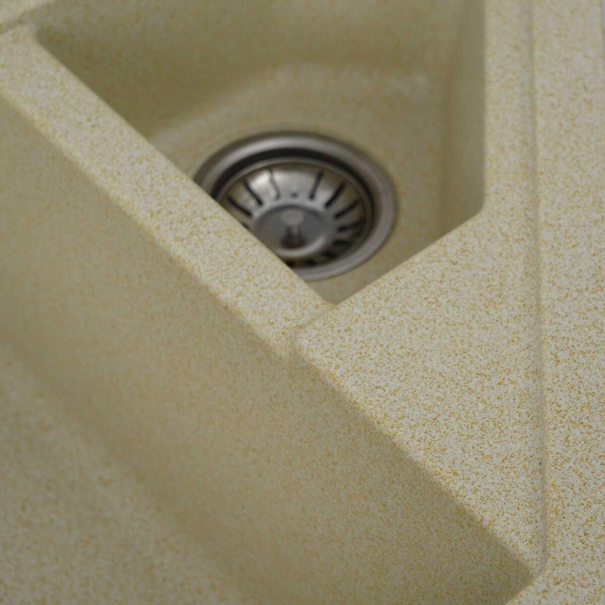 Мойка имеет матовую фактуру и приятный для глаза цвет - песок, что позволяет ей легко вписаться в интерьер кухни.