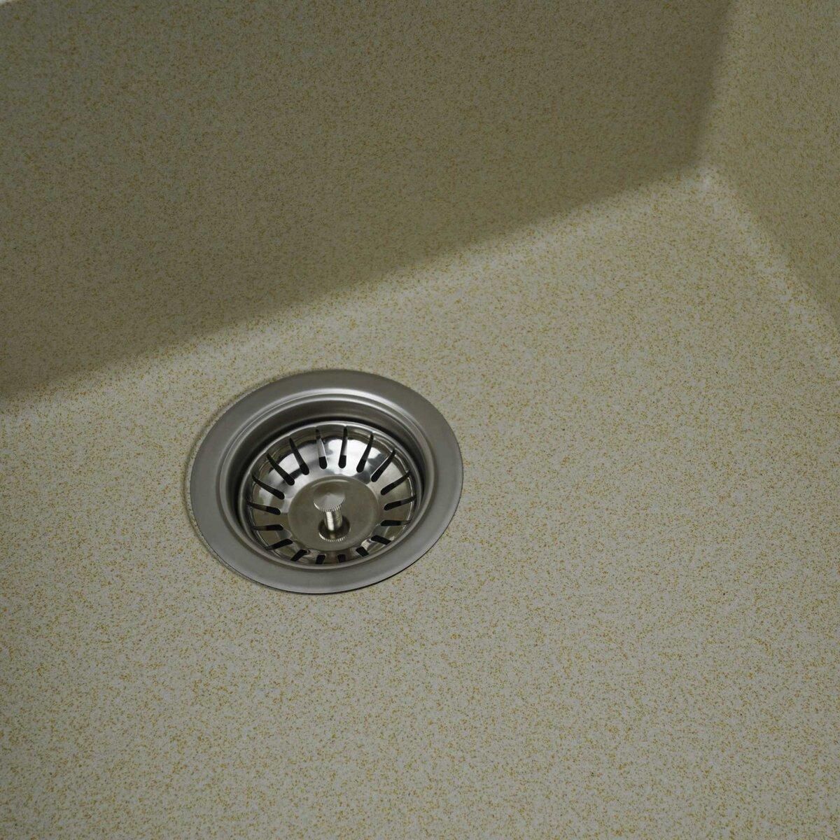 Мойка имеет матовую фактуру и приятный для глаза цвет - песок, что позволяет ей легко вписаться в интерьер кухни.