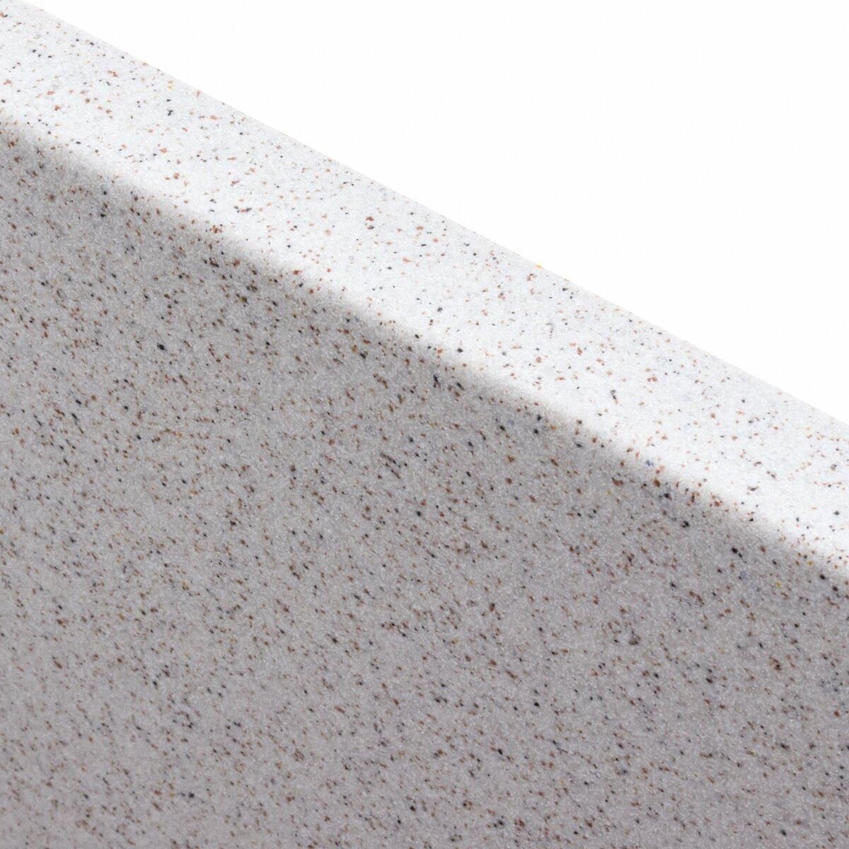 Эта мойка изготовлена с помощью технологии Solid Surface, гарантирующей ее качество и долговечность. Этот материал производится методом литья, и в нем сочетаются 80% кварцевого песка и 20% смолы. Зрительно он напоминает природный камень, а его поверхность является теплой и шелковистой на ощупь.