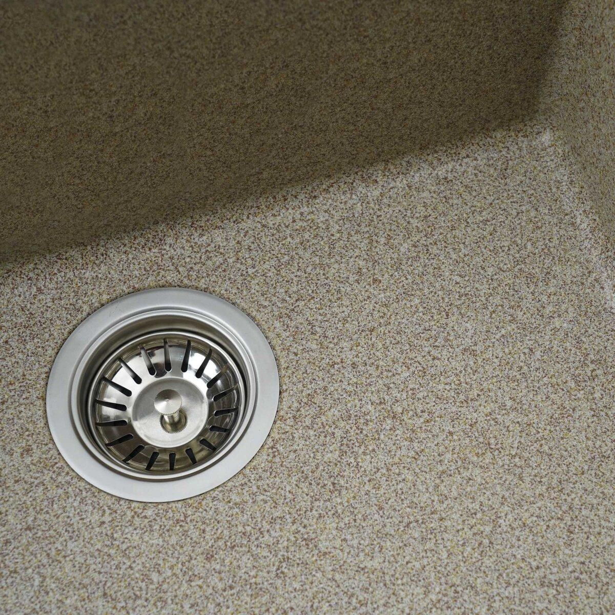 Мойка имеет матовую фактуру и приятный для глаза цвет - карамель, что позволяет ей легко вписаться в интерьер кухни.