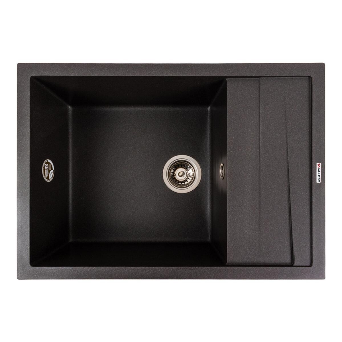 Гранитная мойка для кухни 7050 CASCADA цвета Морион украинского бренда VALESO – это стильная, врезная, прямоугольная мойка, которая своим видом прекрасно дополнит дизайн вашей кухни. Мойка на 80% состоит из кварца и на 20% из очень жесткой акриловой смолы, благодаря чему неприхотлива в уходе, а также имеет большой запас прочности.