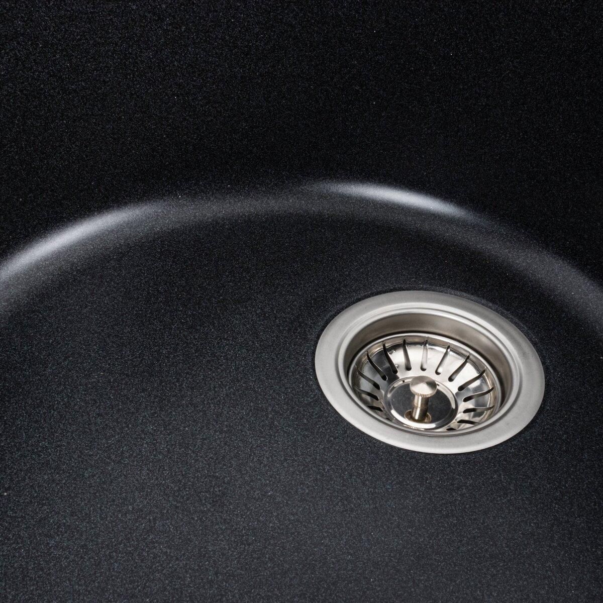 Мойка имеет матовую фактуру и приятный для глаза цвет - карбон, что позволяет ей легко вписаться в интерьер кухни.
