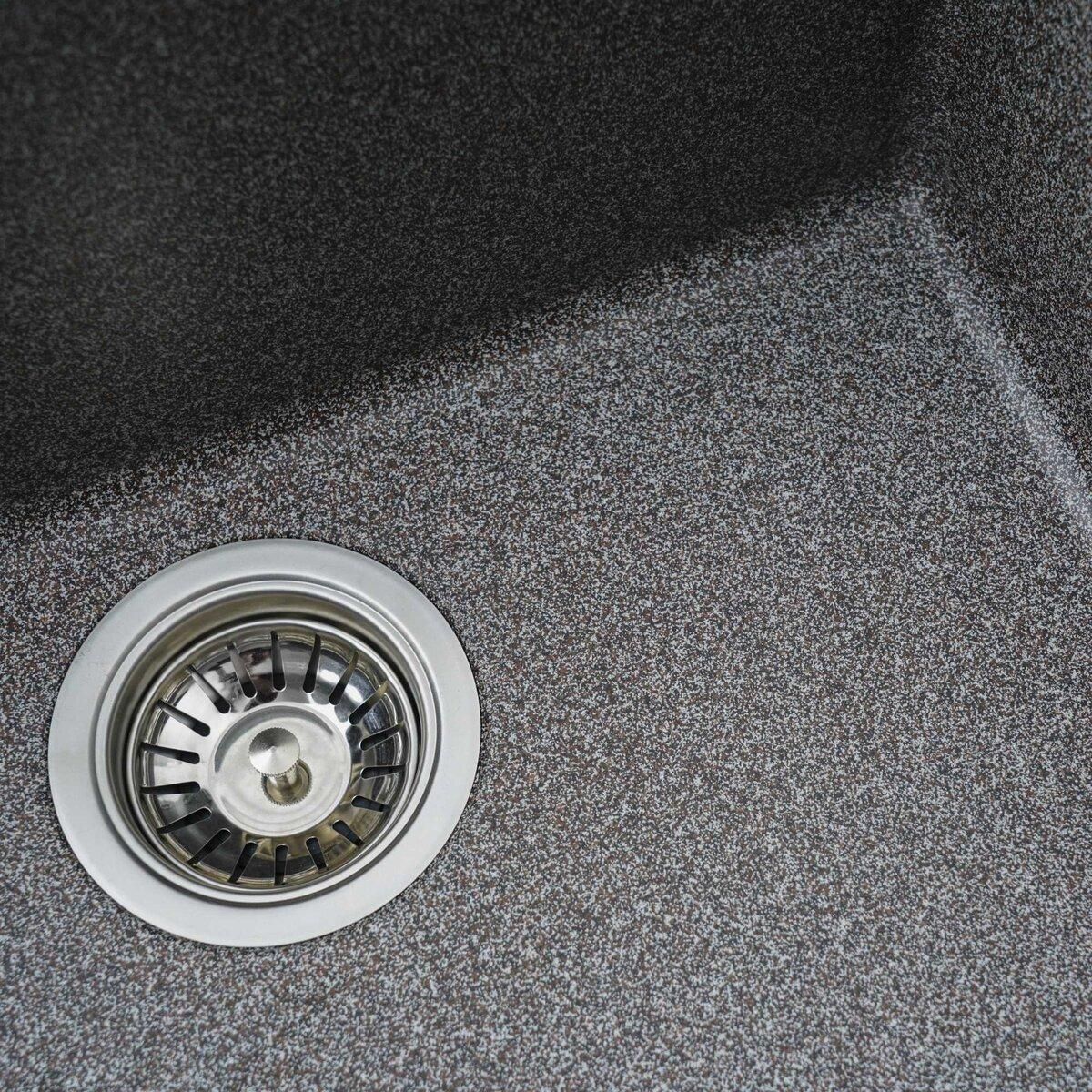 Мойка имеет матовую фактуру и приятный для глаза цвет - микс, что позволяет ей легко вписаться в интерьер кухни.