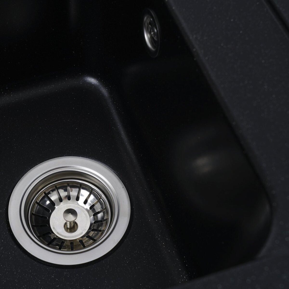 Мойка имеет матовую фактуру и приятный для глаза цвет - черный металлик, что позволяет ей легко вписаться в интерьер кухни.