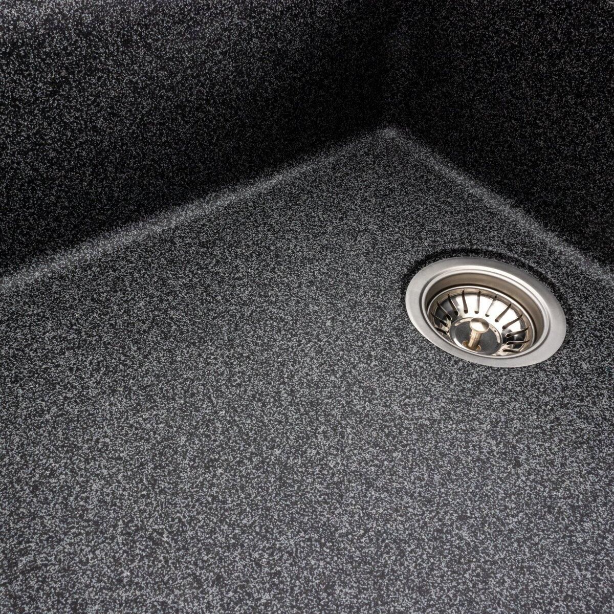 Мойка имеет матовую фактуру и приятный для глаза цвет – графит, позволяющий ей легко вписаться в интерьер кухни.