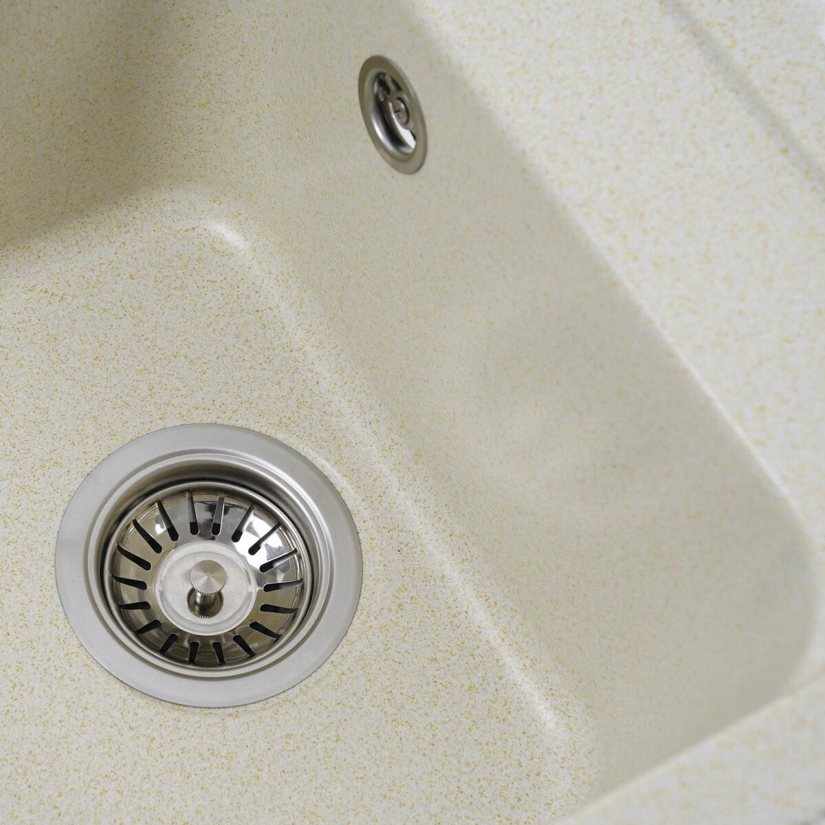 Мойка имеет матовую фактуру и приятный для глаза цвет - песок, что позволяет ей легко вписаться в интерьер кухни.