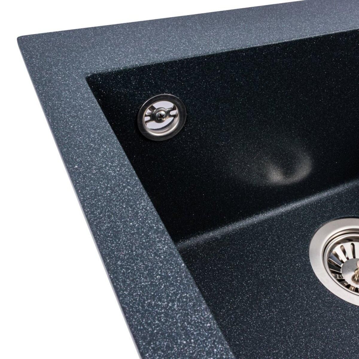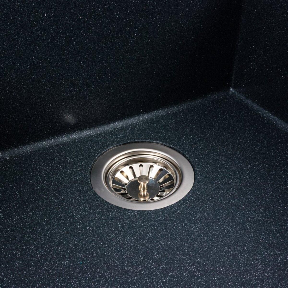 Изготовлена из прочного композитного материала на основе гранита, мойка устойчива к царапинам, высоким температурам и бытовой химии. Цвет антрацит гармонично сочетается с различными типами кухонных фасадов и столешниц.