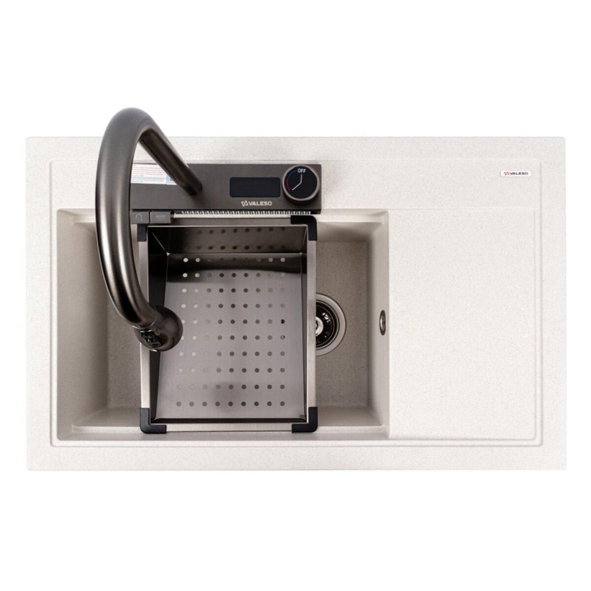 Белая в точку матовая гранитная мойка VALESO ATRUM 7950