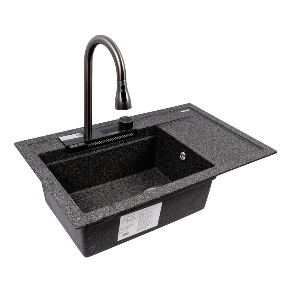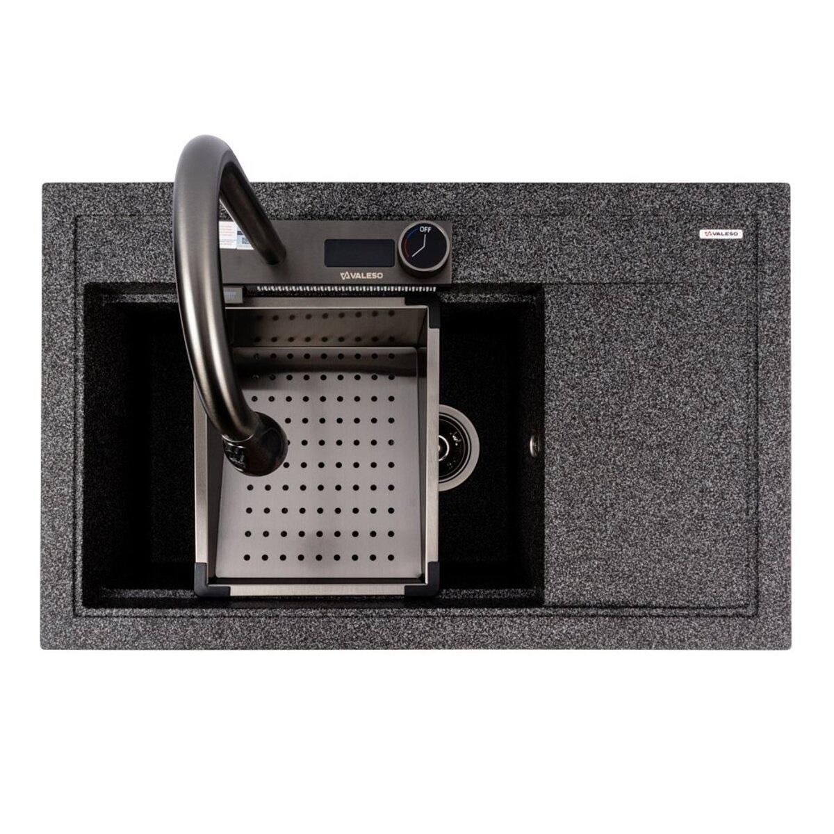 Встраиваемая гранитная мойка VALESO ATRUM 7950, матовая, Графит