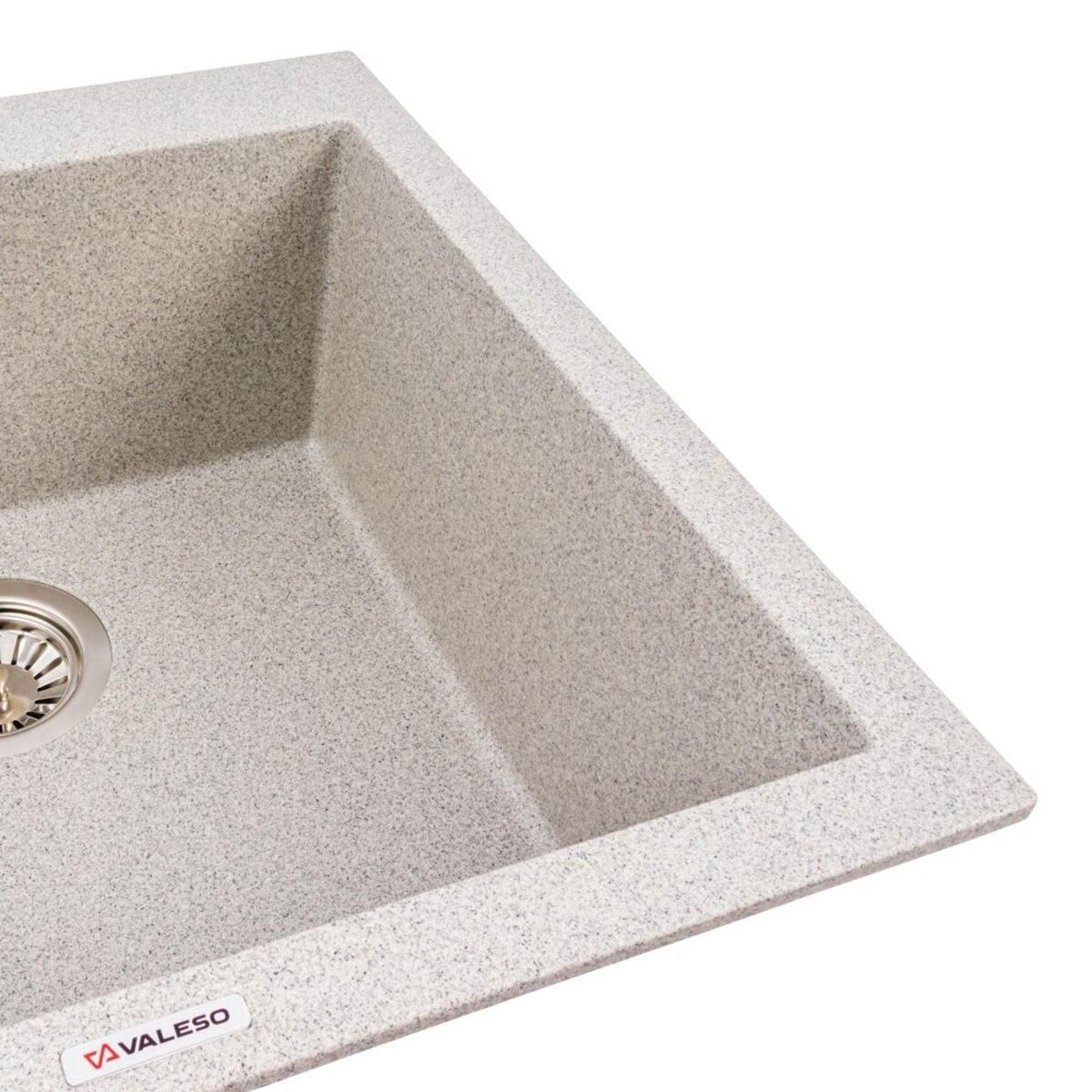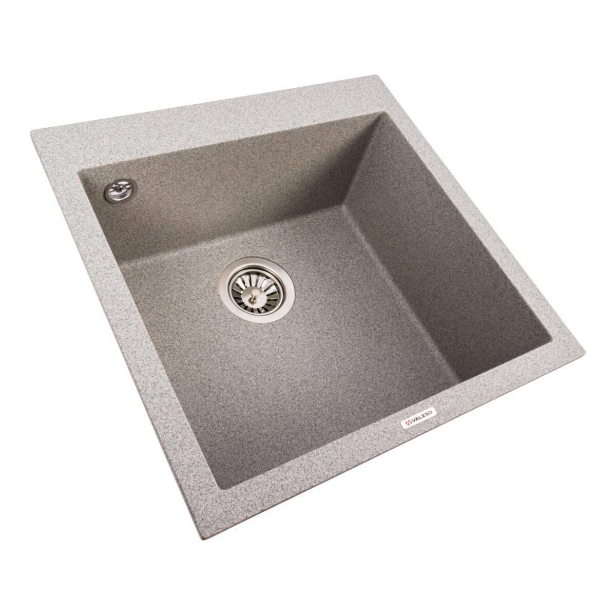 Мойка гранитная матовая VALESO 5050 GALAX Серая — стильная кухонная мойка в сдержанном сером оттенке с матовым покрытием. Глубокая чаша 200 мм делает её удобной в ежедневном использовании, а компактный размер 500×500 мм позволяет экономно использовать пространство даже на маленькой кухне. Мойка изготовлена из прочного композитного материала на основе гранита, устойчивого к царапинам, перепадам температур и воздействию бытовой химии.