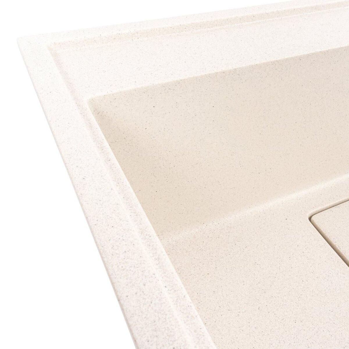 Гранитная мойка VALESO 6050 SHERLIT (белая в крапинку) — это отличный выбор для тех, кто ищет надежное, функциональное и эстетически привлекательное дополнение к своей кухне с длительным сроком службы и уникальным дизайном.