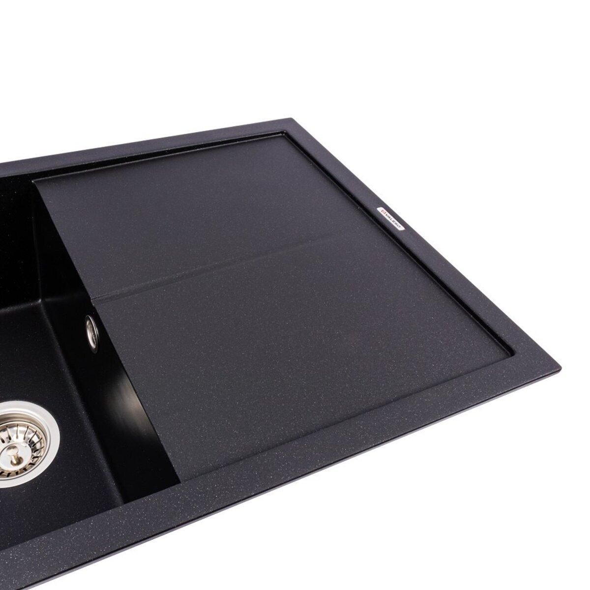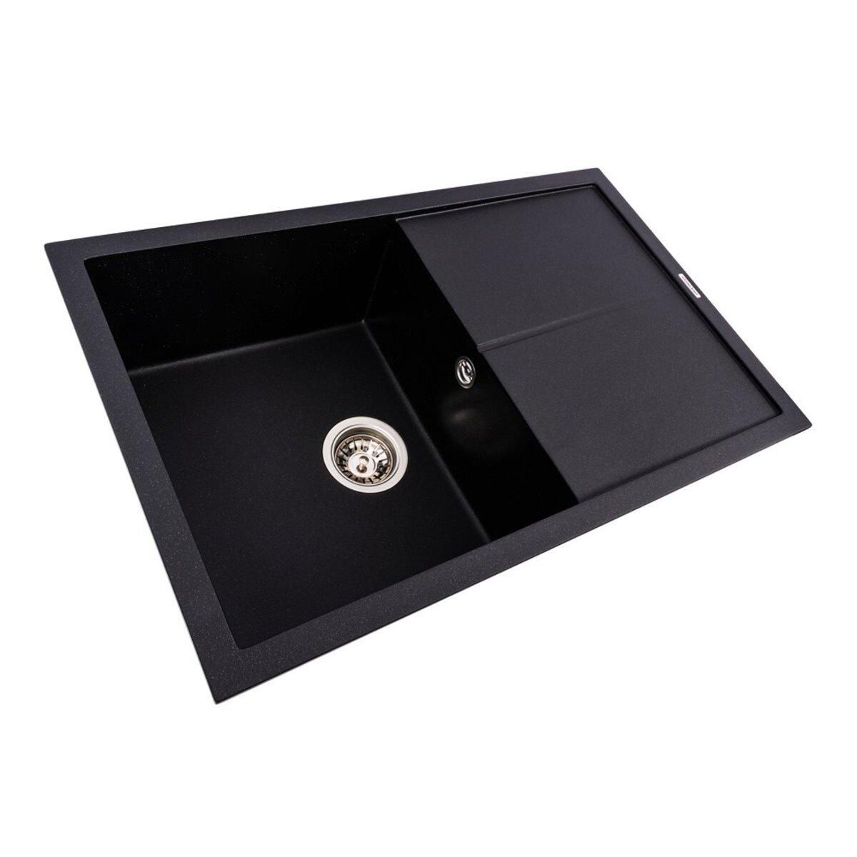VALESO MAGNUM 7950 в цвете чёрный металлик — это функциональная и современная мойка из искусственного камня, подходящая для повседневного использования. Она оснащена глубокой чашей слева и удобным крылом справа, что делает её практичным решением для любой кухни.
