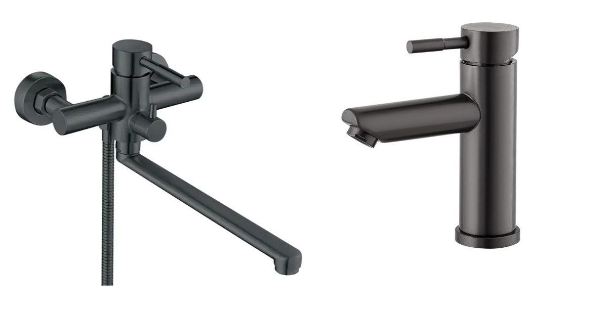 Набор 2 в 1 смесителей для ванной из нержавейки Mixxus SUS 006 Графит + Mixxus SUS 001 A Графит