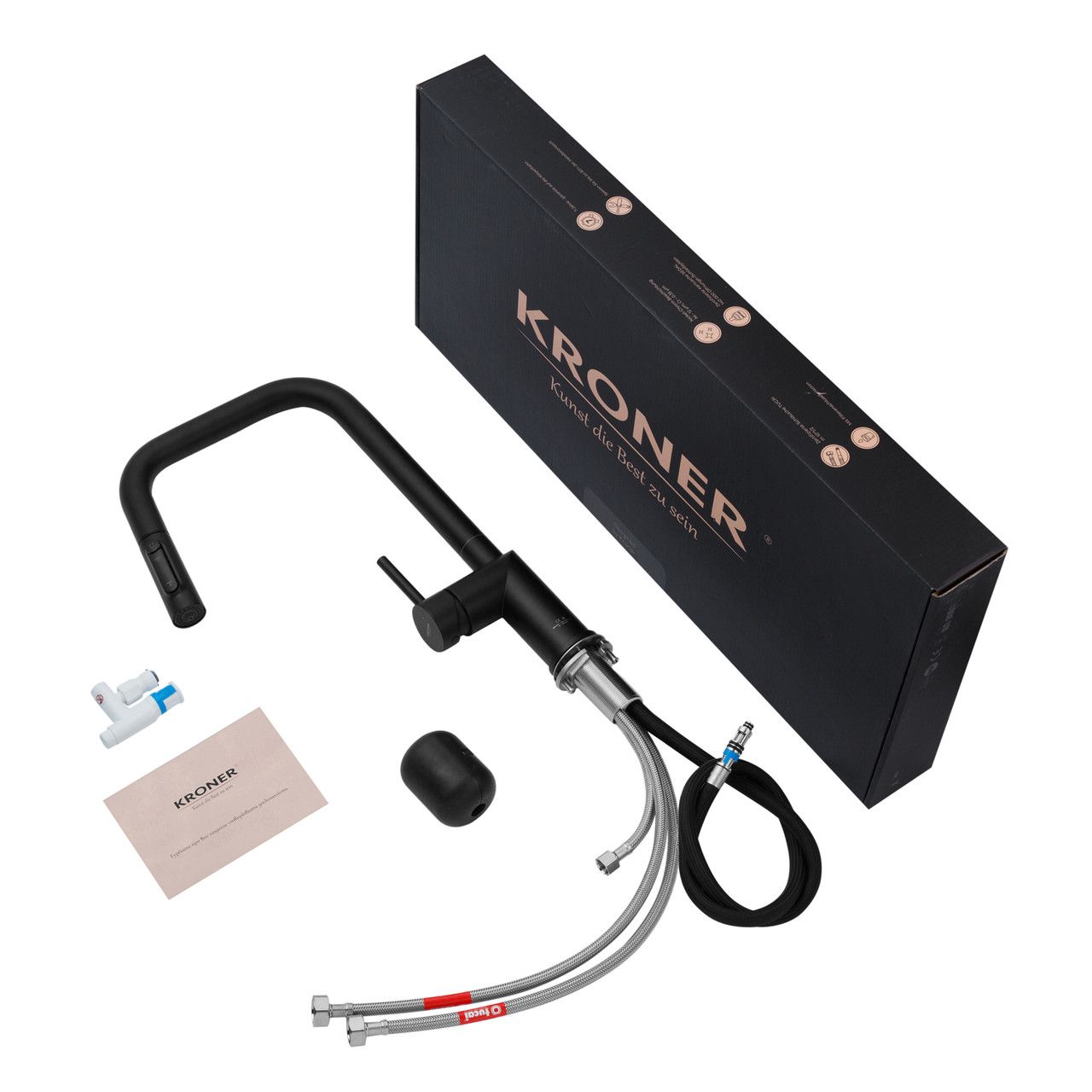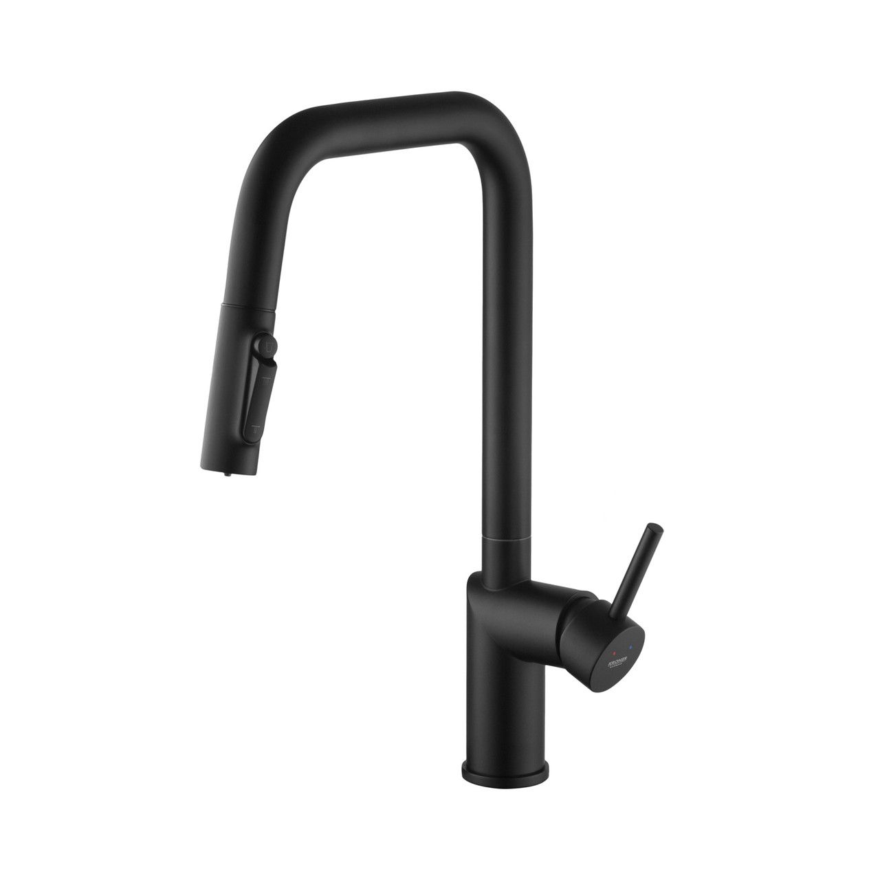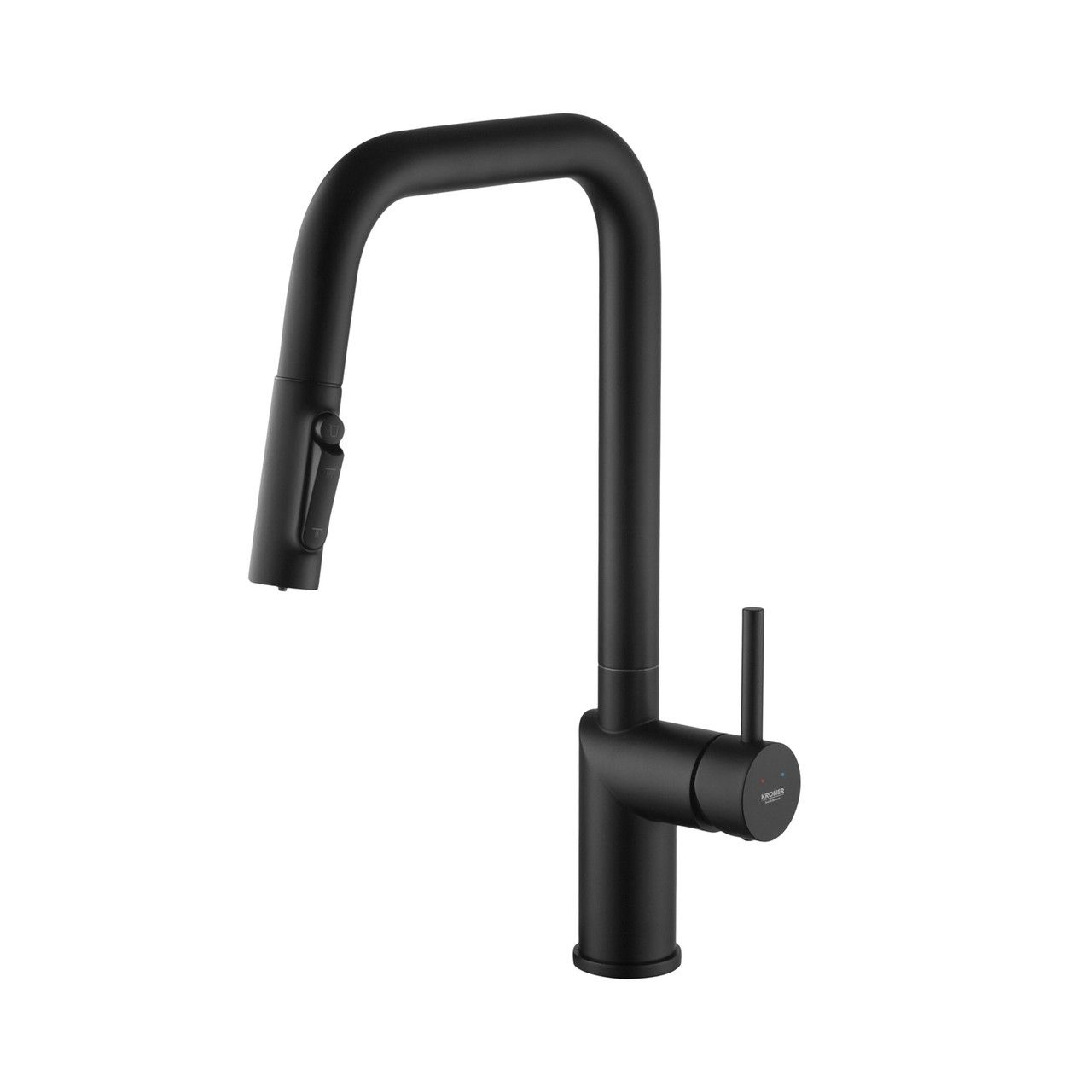 Смеситель для кухни Kroner Element 296569B-3801 — современный и технологичный кухонный смеситель в стильном черном цвете с матовым покрытием, который эффектно подчёркивает интерьер и выглядит особенно актуально в кухнях в стиле лофт, модерн или минимализм.