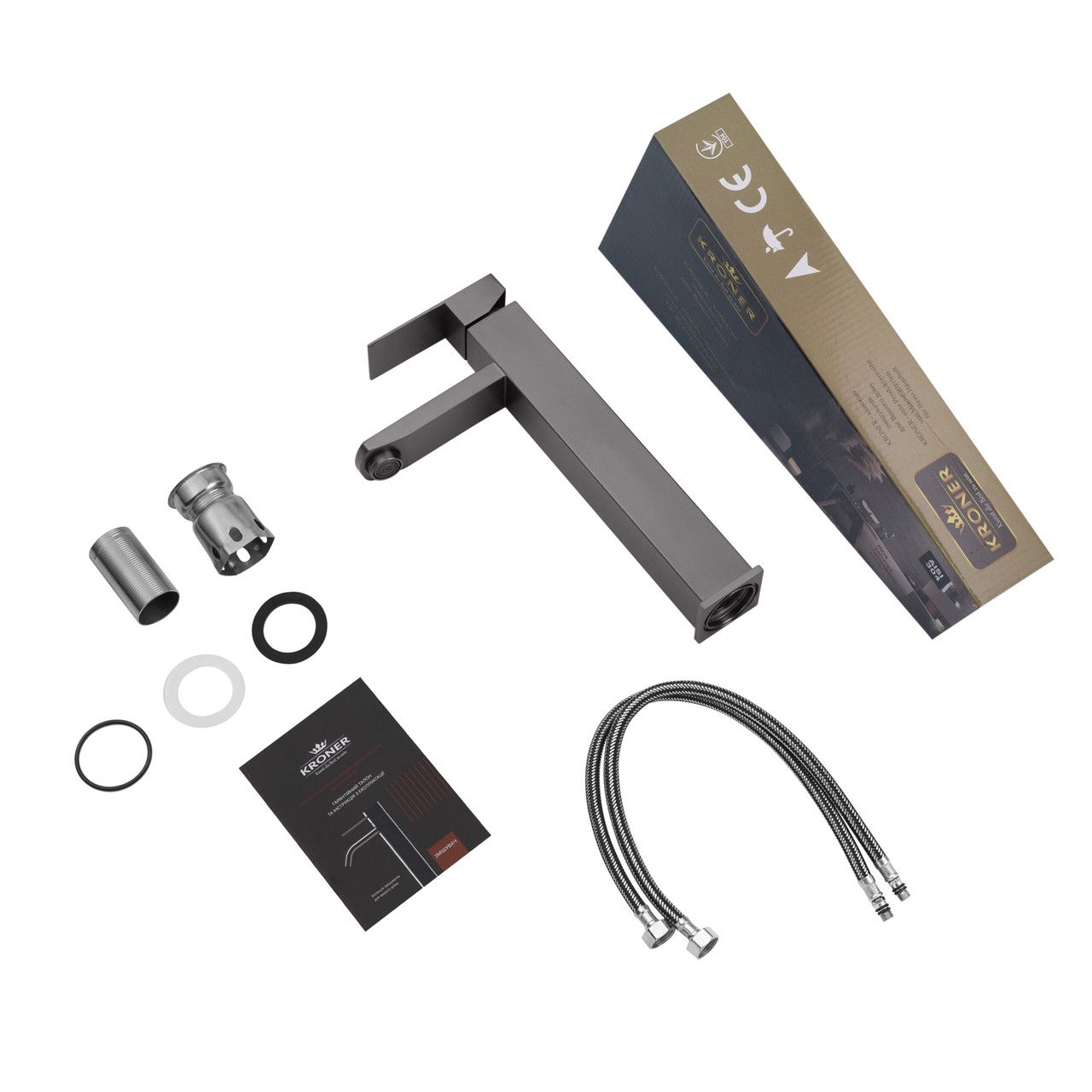 Смеситель для раковины Kroner KRP Edelstahl Kubus – PVD010-3: современный стиль и функциональность в одном образе.