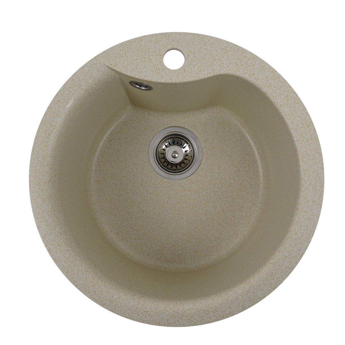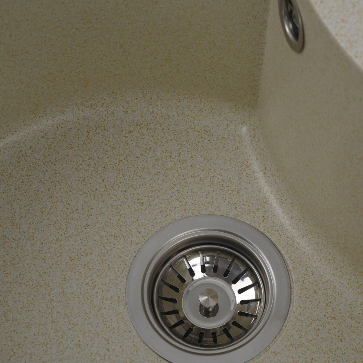 Мойка имеет матовую фактуру и приятный для глаза цвет - песок, что позволяет ей легко вписаться в интерьер кухни.