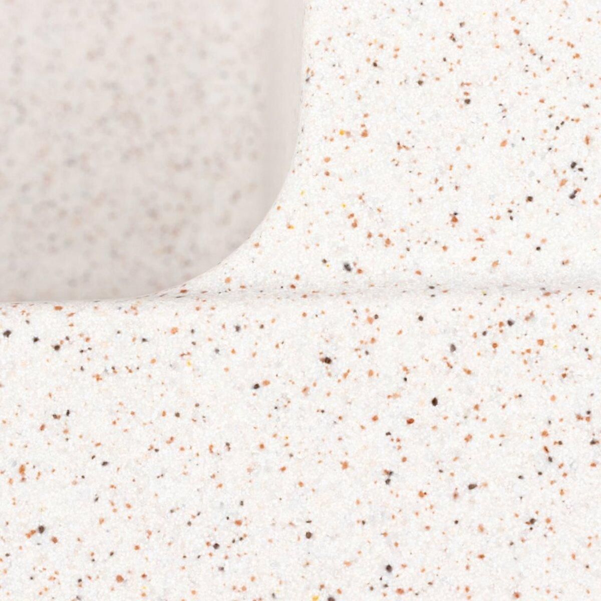 Эта мойка изготовлена с помощью технологии Solid Surface, гарантирующей ее качество и долговечность. Этот материал производится методом литья, и в нем сочетаются 80% кварцевого песка и 20% смолы. Зрительно он напоминает природный камень, а его поверхность является теплой и шелковистой на ощупь.