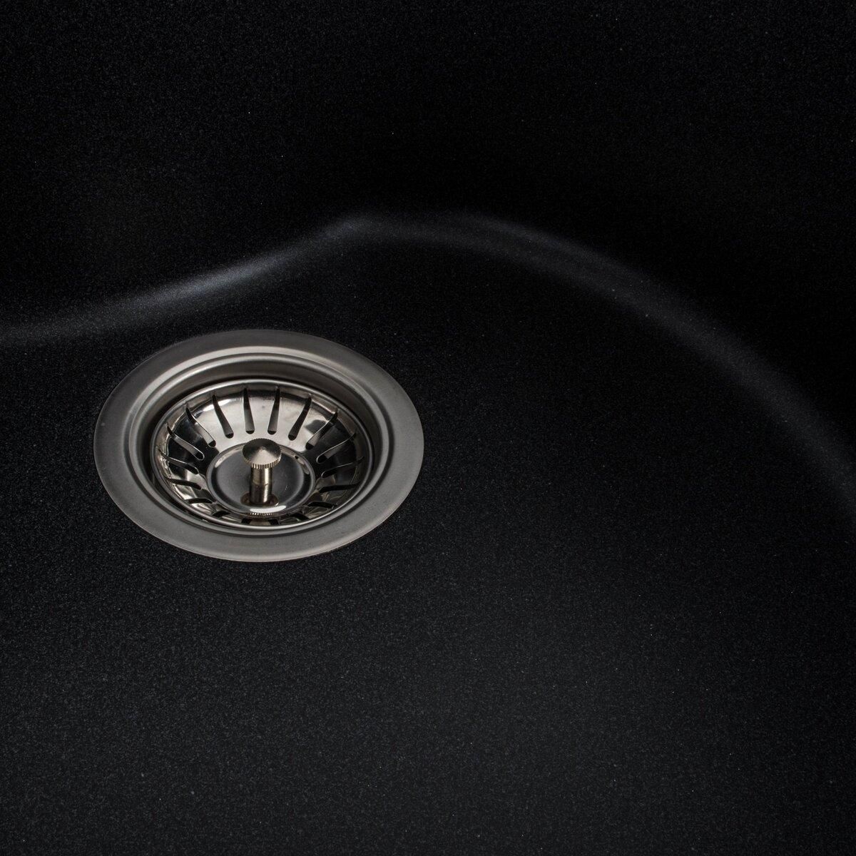 Мойка имеет матовую фактуру и приятный для глаза цвет - карбон, что позволяет ей легко вписаться в интерьер кухни.