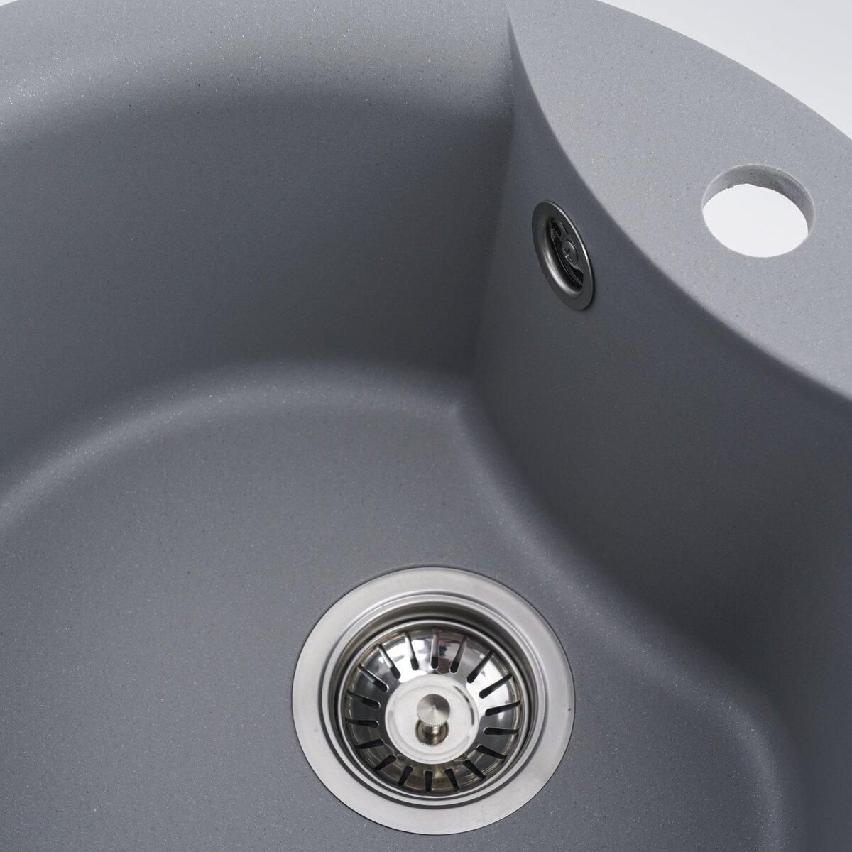 Мойка имеет матовую фактуру и приятный для глаза цвет - серый металлик, что позволяет ей легко вписаться в интерьер кухни.