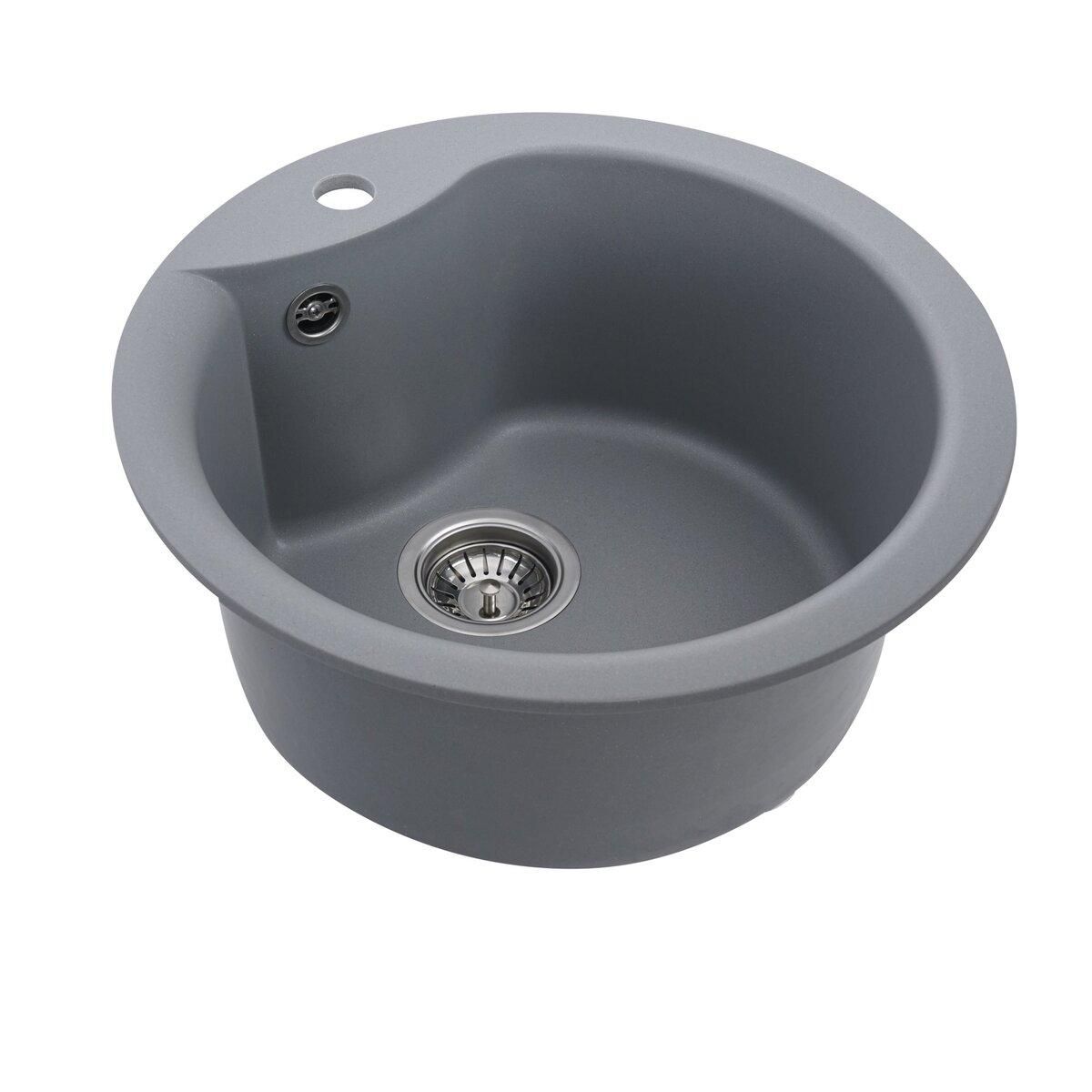 Гранитная кухонная мойка VALESO 480 TURAS матовая Серый металлик