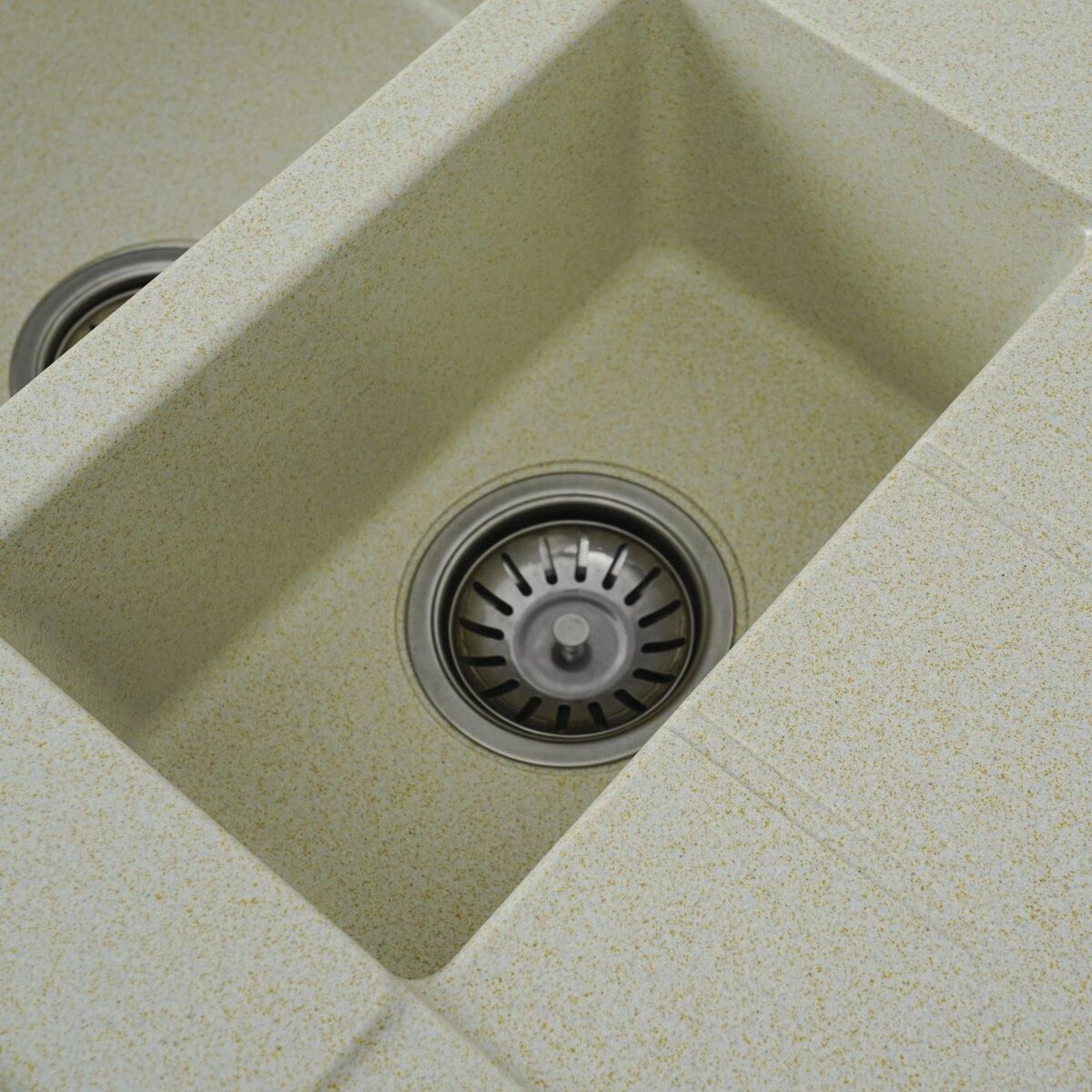 Мойка на 80% состоит из кварца и на 20% из чрезвычайно твердой акриловой смолы, благодаря чему неприхотлива в уходе, а также имеет большой запас прочности.