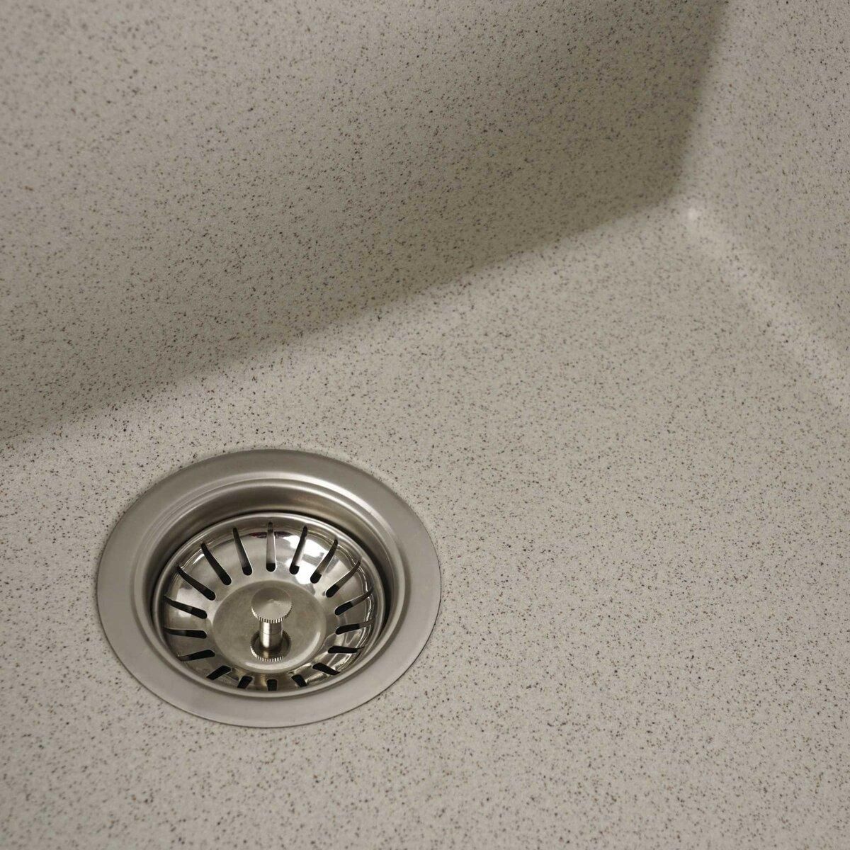 Мойка на 80% состоит из кварца и на 20% из чрезвычайно твердой акриловой смолы, благодаря чему неприхотлива в уходе, а также имеет большой запас прочности.