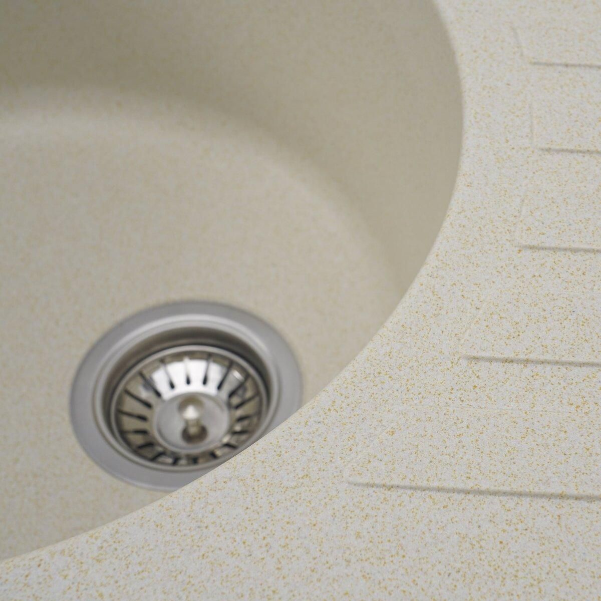 Мойка имеет матовую фактуру и приятный для глаза цвет - песок, что позволяет ей легко вписаться в интерьер кухни.