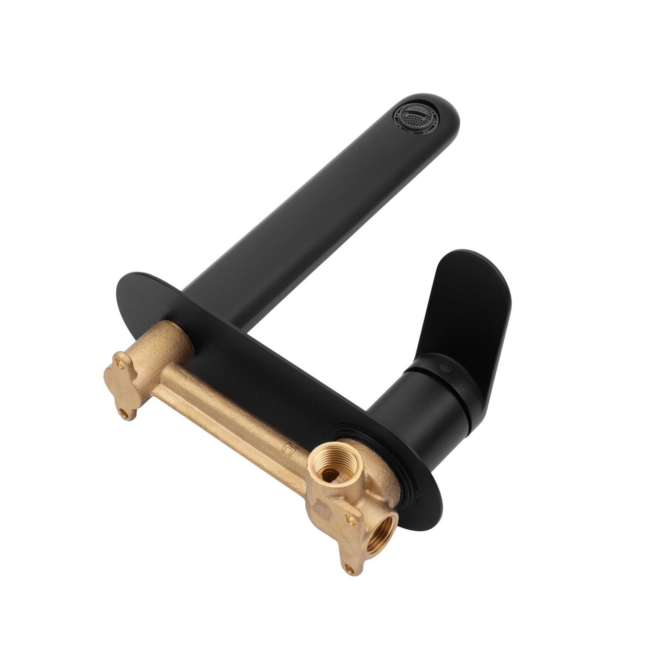 Скрытая установка смесителя делает поверхность вокруг раковины визуально чистой и аккуратной — видна только изящная ручка управления и излив. Плавный ход рычага обеспечивает точную регулировку температуры и напора воды, создавая ощущение комфорта при каждом использовании.