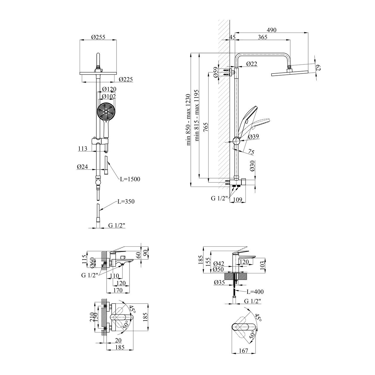 Комплект поставкиЗмішувач для раковини, змішувач для ванни, душова система.