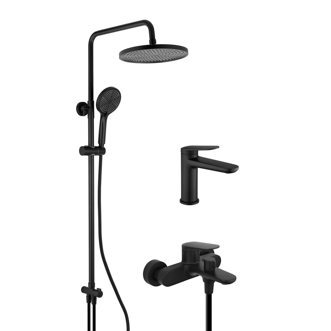 Набор смесителей Kroner Element 211801-3801 (чёрный) — современное и стильное решение для ванной комнаты, выполненное в актуальном чёрном цвете с матовым покрытием. Такой дизайн эффектно подчёркивает интерьер и идеально вписывается в стили лофт, модерн и минимализм.