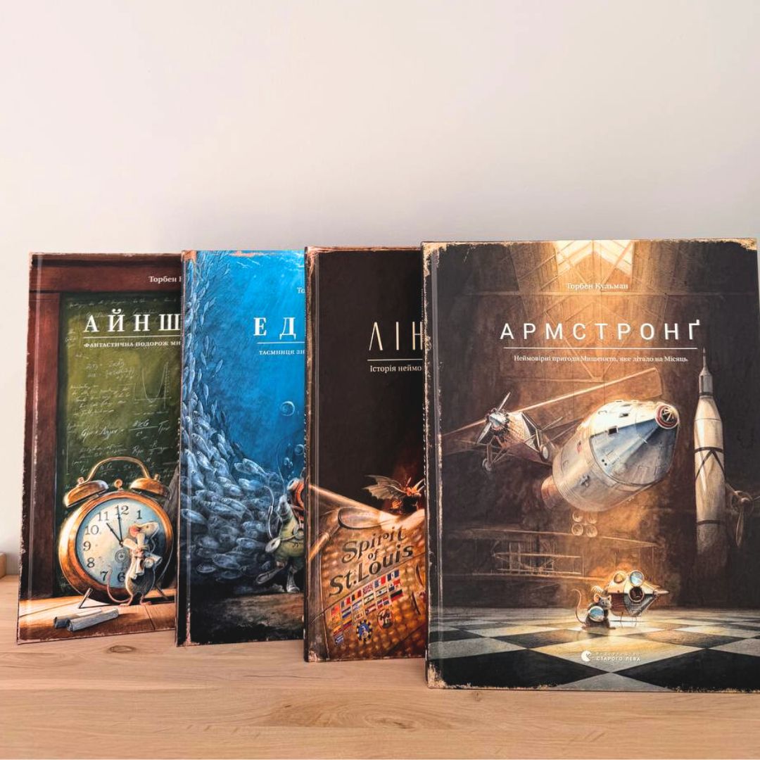 Комплект книг Торбена Кульмана про мишеня винахідника: Ліндберг, Едісон, Армстронг, Ейнштейн (дитячі книги про науку)