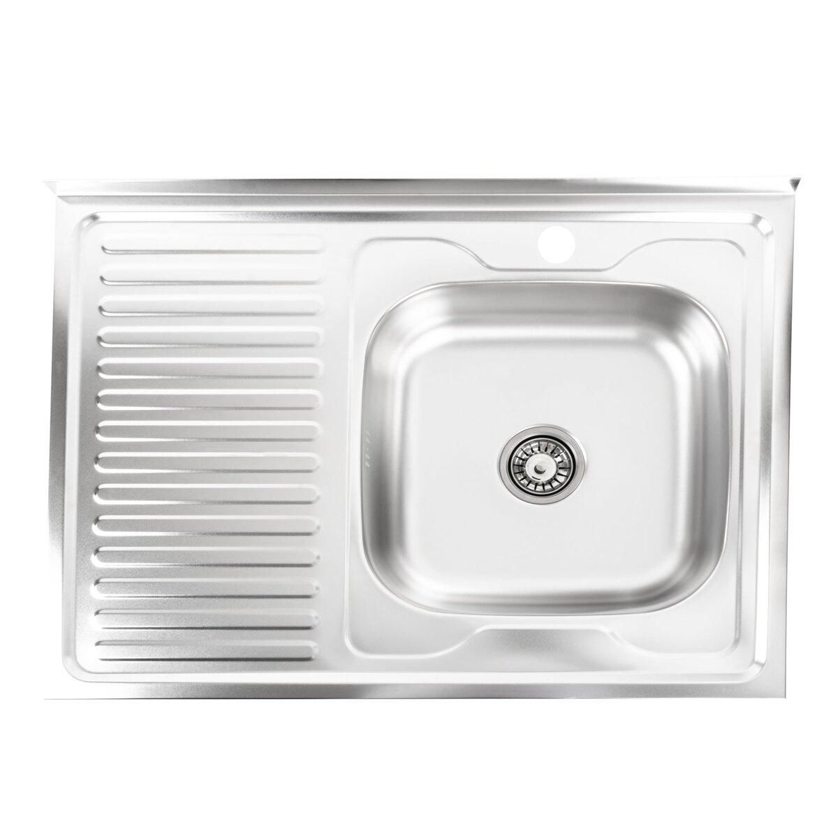 Мойка VALESO 8060 Сатин изготовлена из высококачественной нержавеющей стали, что обеспечивает ее долговечность, прочность и легкость в уходе. Это экономичный вариант для любой классической кухни. Нержавеющая сталь SUS 201 отлично сочетается с различными материалами и цветами интерьера. Мойка может иметь левое или правое крыло для сушки (L или R), с соответствующим отверстием для смесителя. Ее гладкая поверхность почти не задерживает пятна, что значительно упрощает ежедневную уборку.