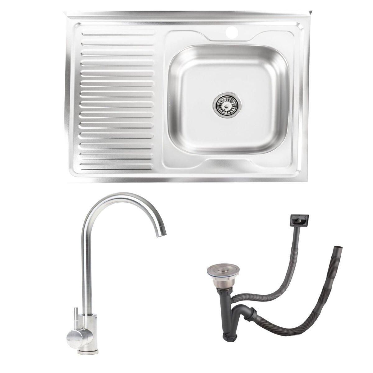 СПлет мойка накладная 8060 САТИН 'R' 0,7/160 TM Valeso + 56 NESP кухонный смеситель