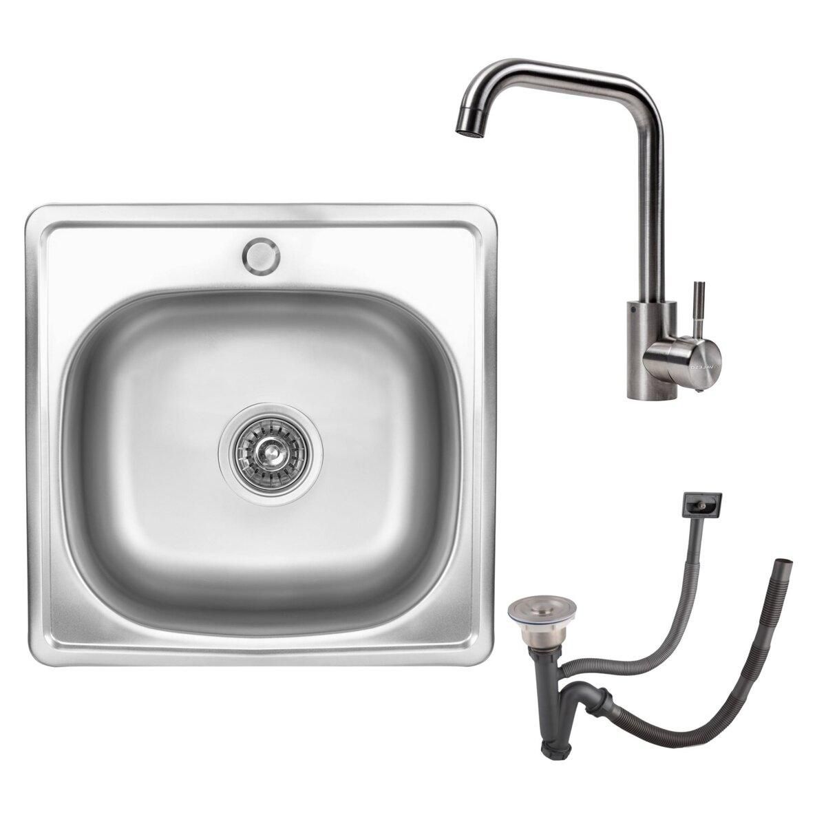 Комплект "VALESO 4848 Сатин": мойка и смеситель