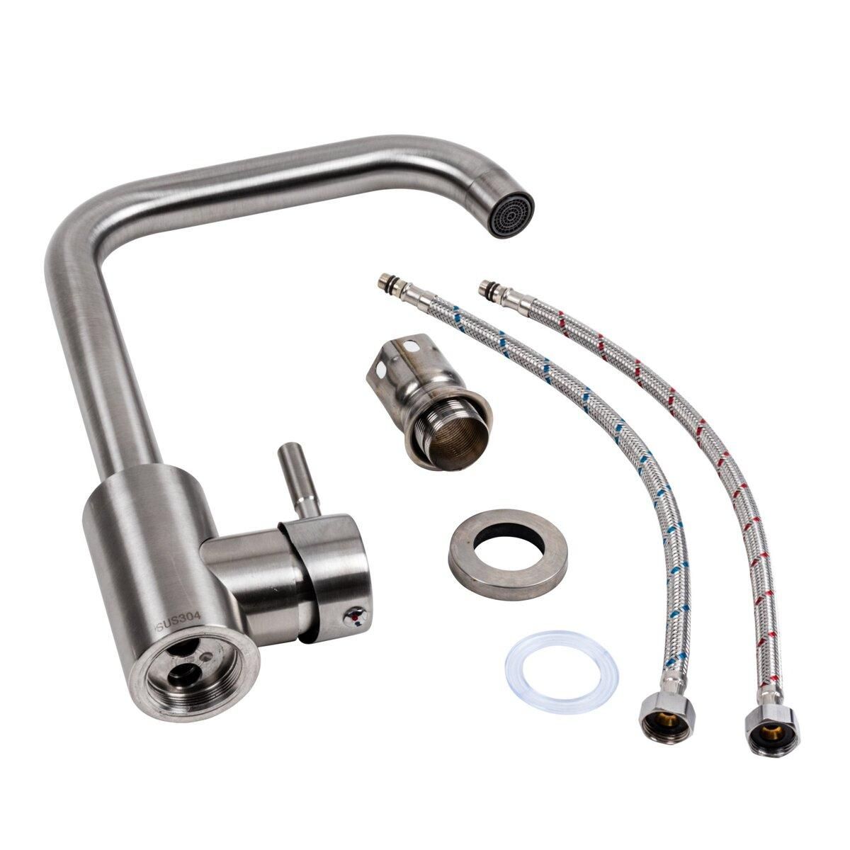 Смеситель VALESO NS02A — это идеальное сочетание современного дизайна, высокого качества и функциональности. Благодаря стильному внешнему виду и прочным материалам он гармонично впишется в любой кухонный интерьер.